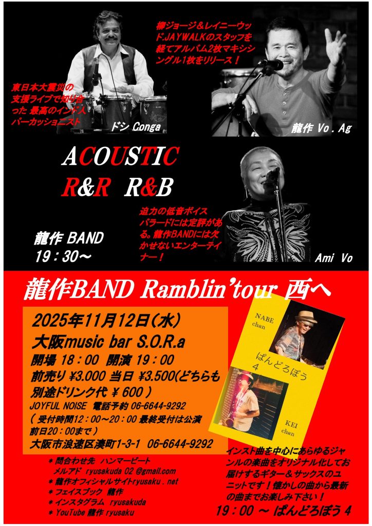 龍作BAND Ramblin‘tour 2025西へ 大阪